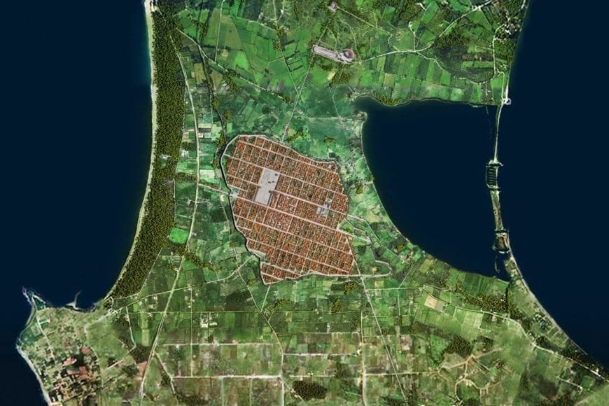 Οι έρευνες έδειξαν πως η χάραξη της κτηματογράφησης της υπαίθρου και η χάραξη του ιστού του άστεως εντάσσονται στο ίδιο σχέδιο, διότι η απόκλιση της κατεύθυνσης Β-Ν του άξονα χάραξης της κτηματογράφησης συμπίπτει με αυτή του πολεοδομικού ιστού.
