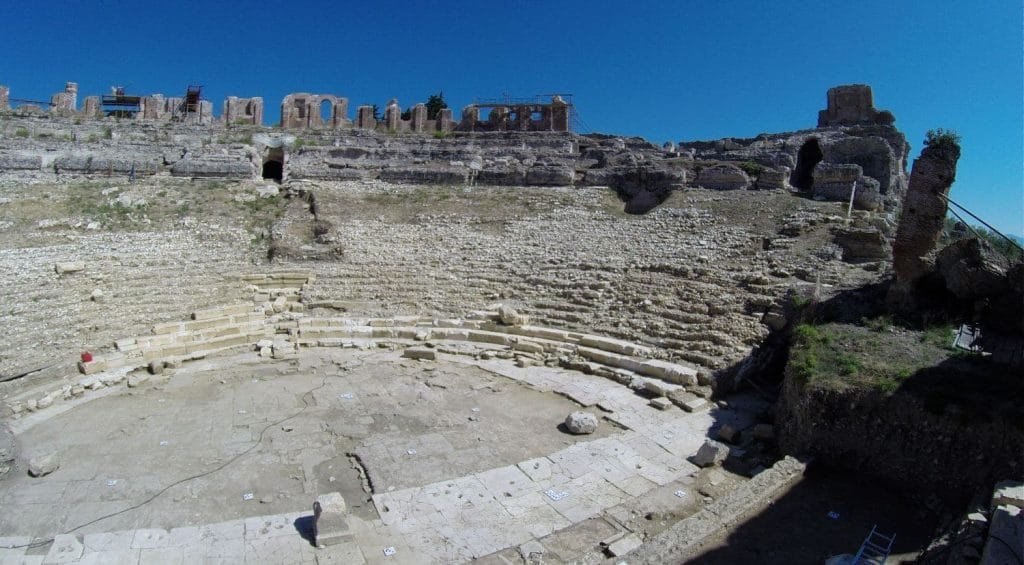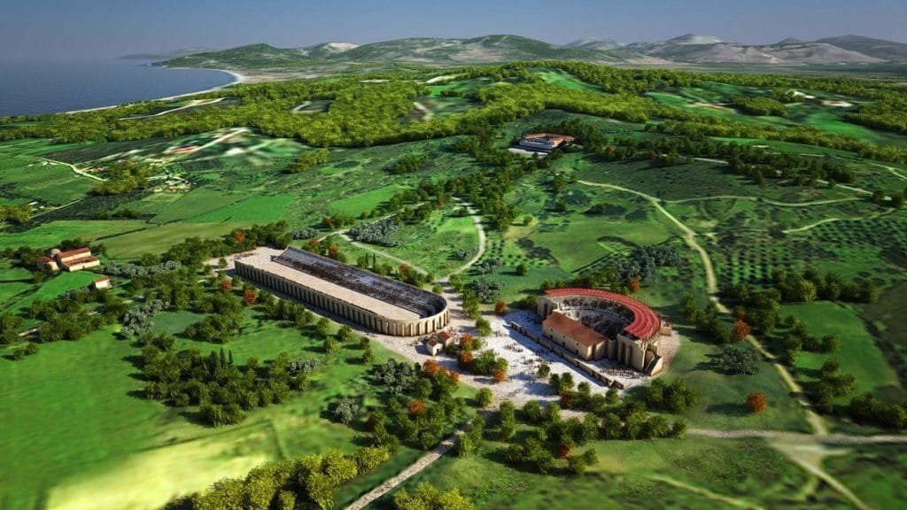 Το Ιερό Άλσος συνιστά τμήμα του Προαστείου και περιλαμβάνει τρία δημόσια μνημεία: το Τρόπαιο της Ναυμαχίας του Ακτίου ή Μνημείο του Αυγούστου, το Στάδιο και το Μεγάλο Θέατρο.